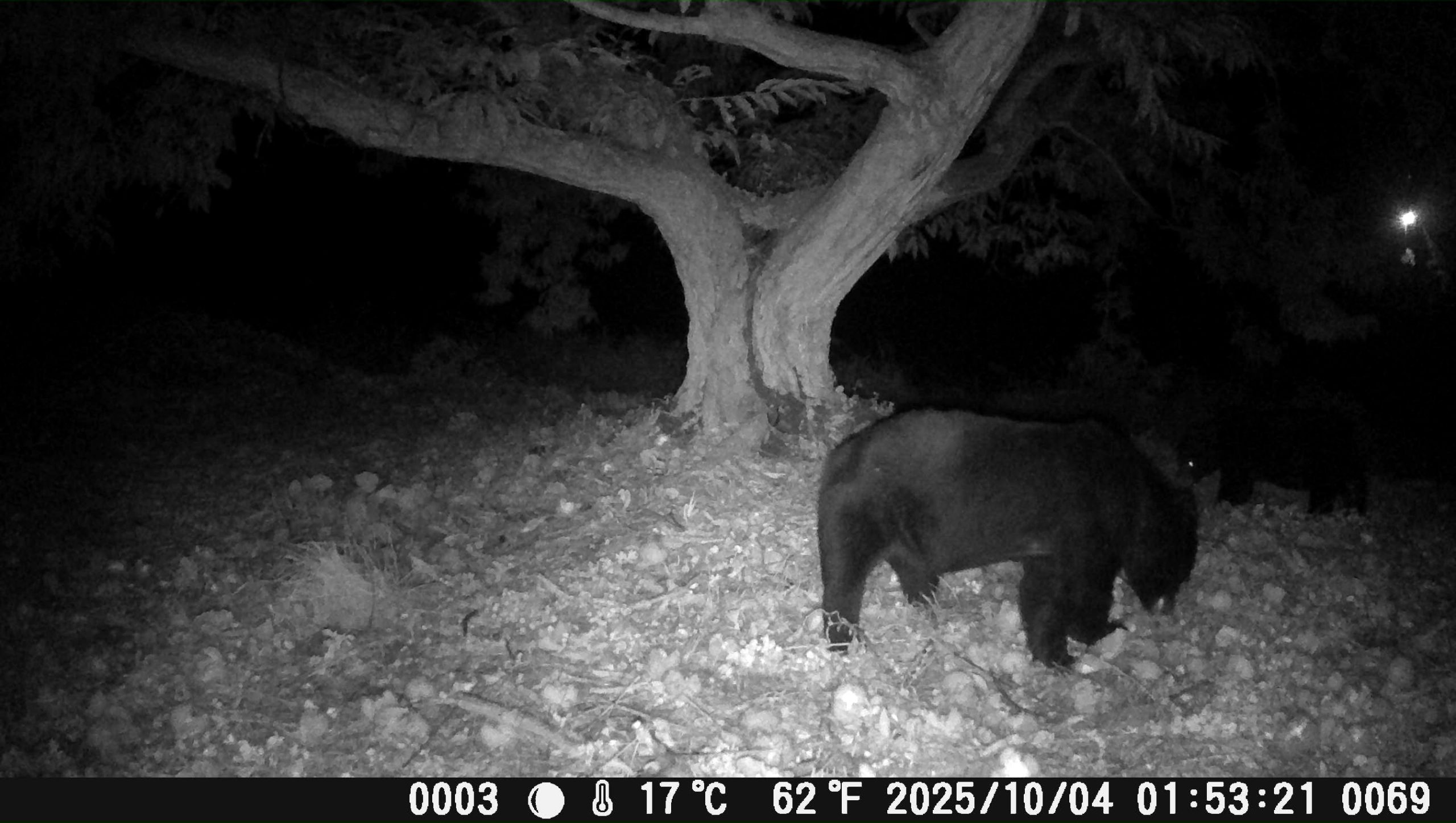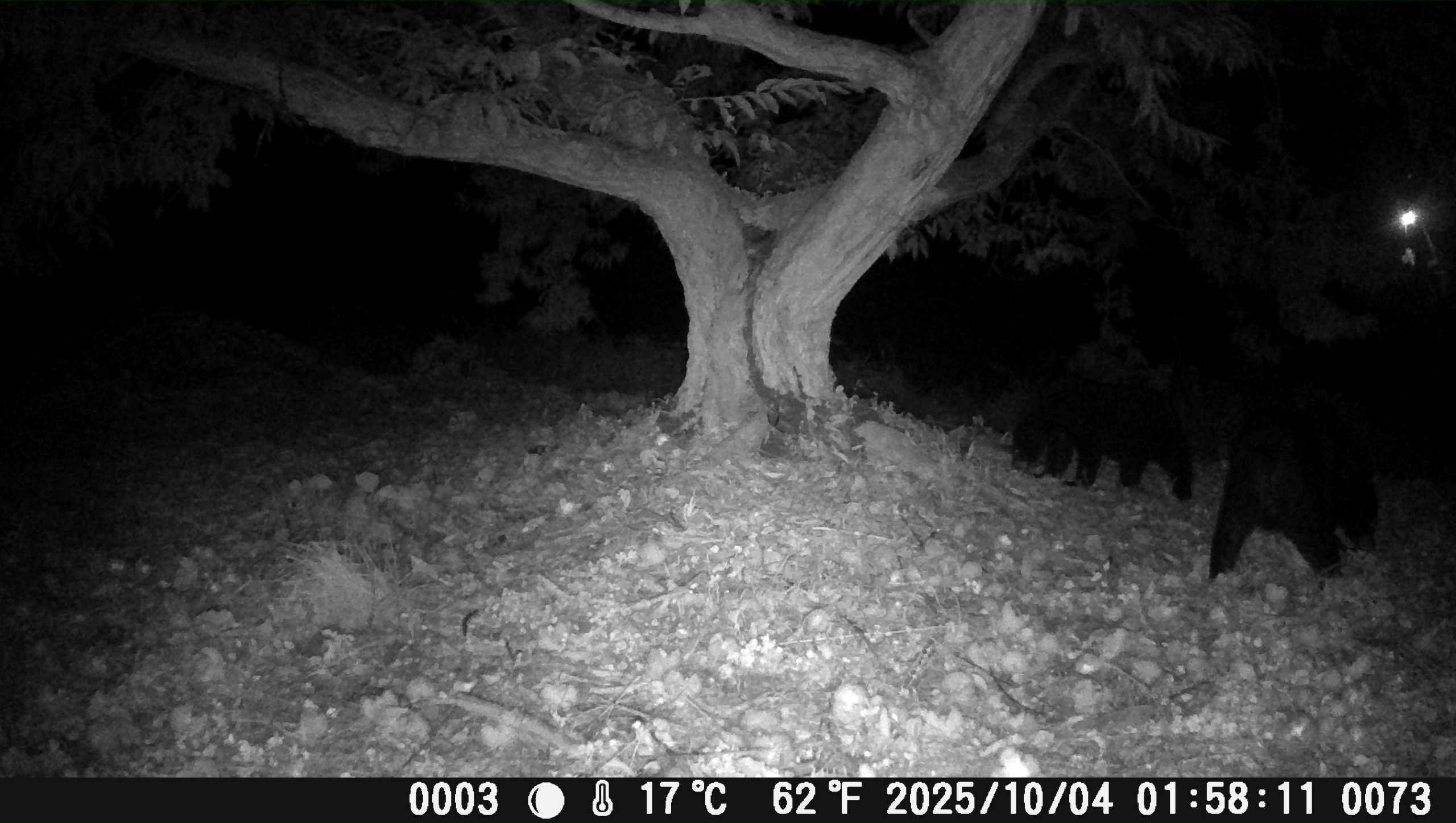 しかしこの夜は、同格の巨大クマが2頭同時に現れ、とりあえず争うことなく最後まで栗を喰い続けました。