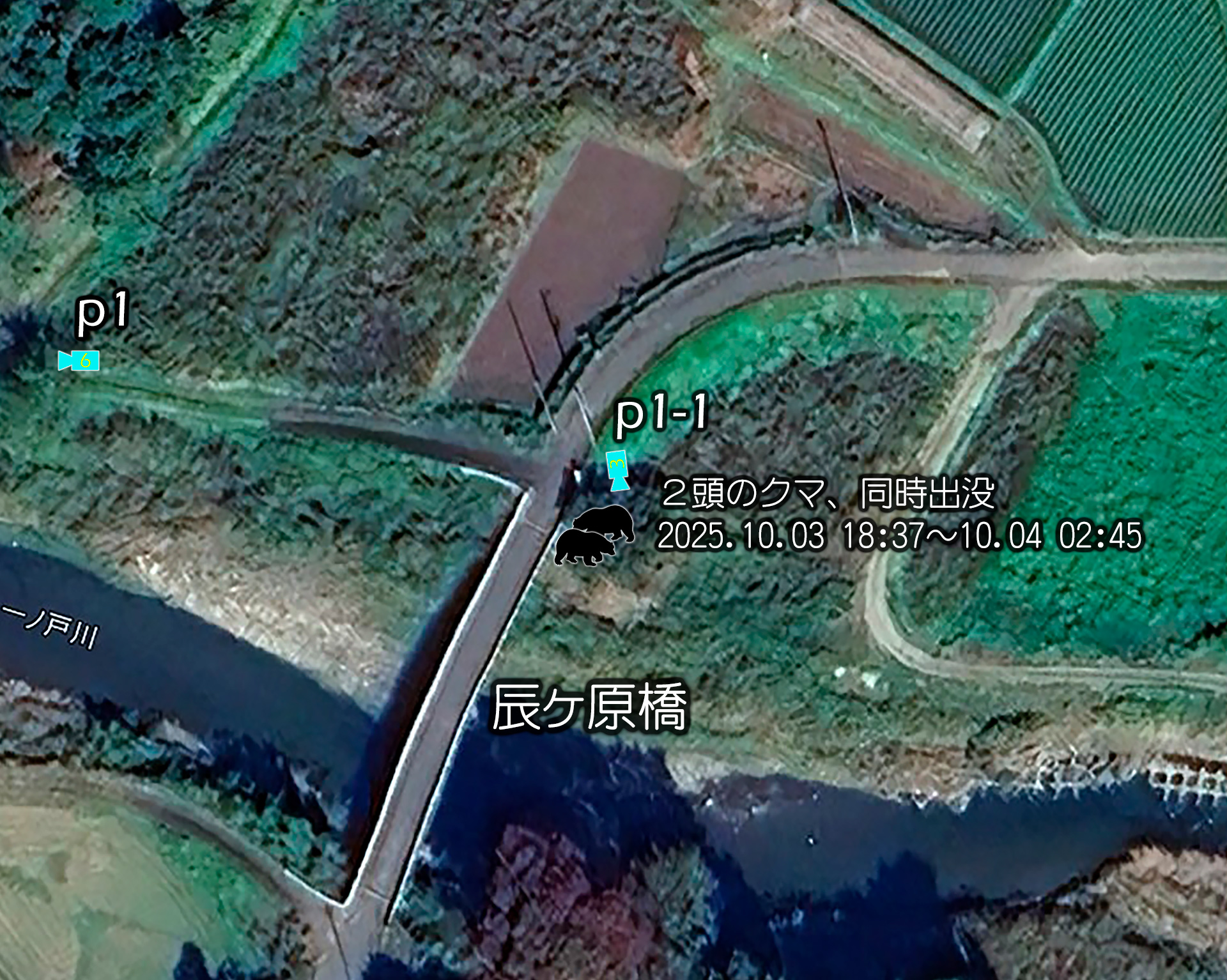 ちなみに、夜が明けて午前6時前頃、この栗の木の持ち主の人が、橋の下の草やぶに潜んでいるクマを発見。