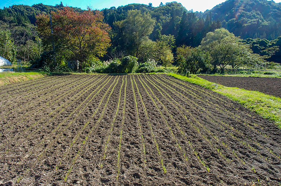先に播種が終わった南部小麦は、もう間もなく麦踏みが出来るくらい育っています。