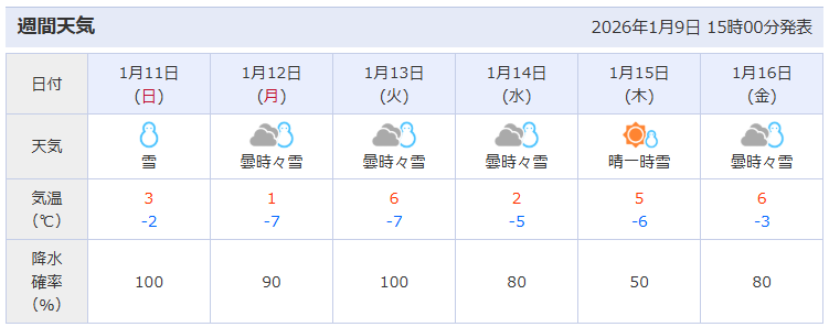 一方、明後日の日曜日は、雪が降るとの予報ですね。